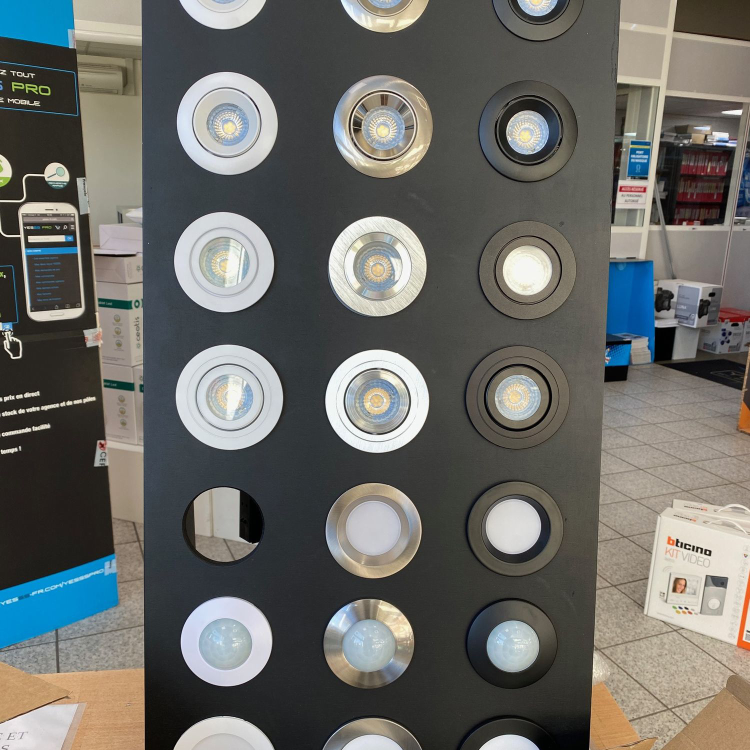- Ou encore l’installation de prises, interrupteurs et de luminaires (éclairage extérieur, spots, panneaux lumineux, bandeau led,..)